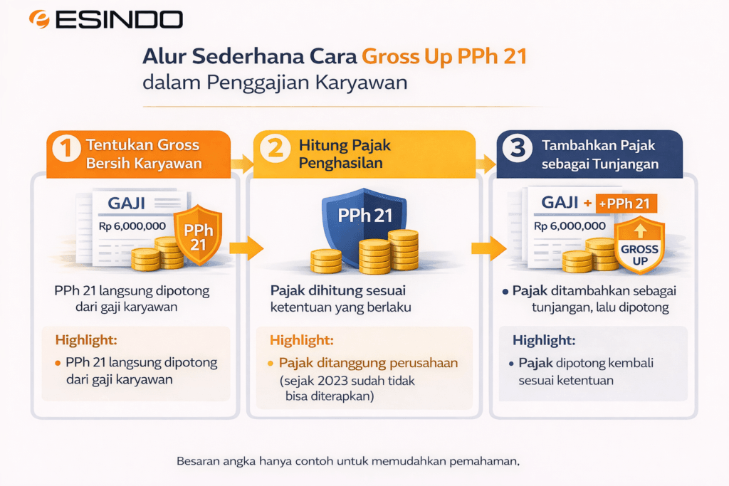 Alur sederhana cara gross up PPh 21 dalam penggajian karyawan.