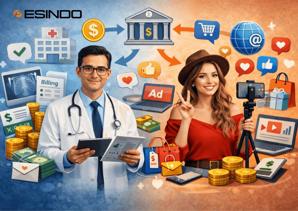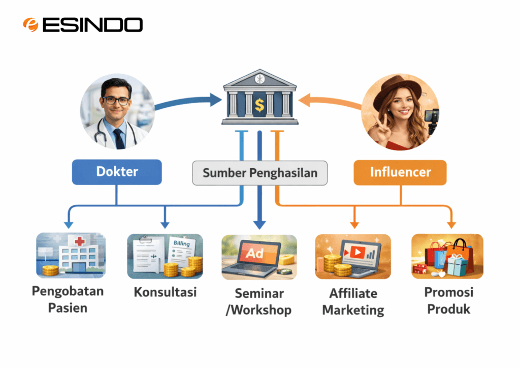 Ilustrasi dokter & influencer dengan berbagai sumber penghasilan digital